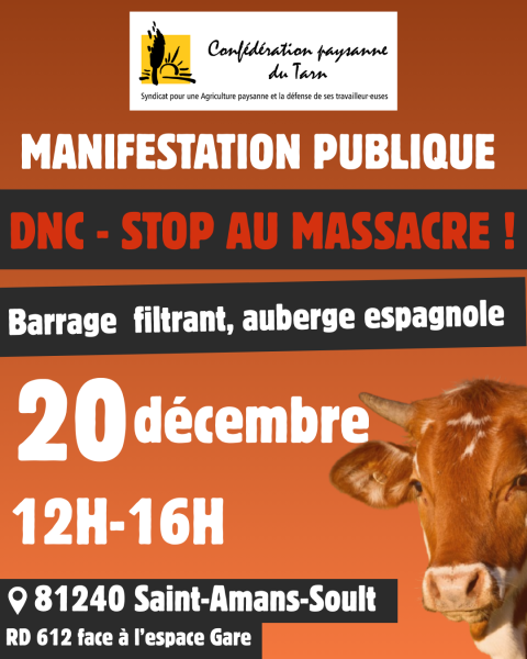 19.12.2025 . Appel à soutien citoyen DNC : « Halte au massacre ! " le 13 Décembre 2025, à Albi et à Castres